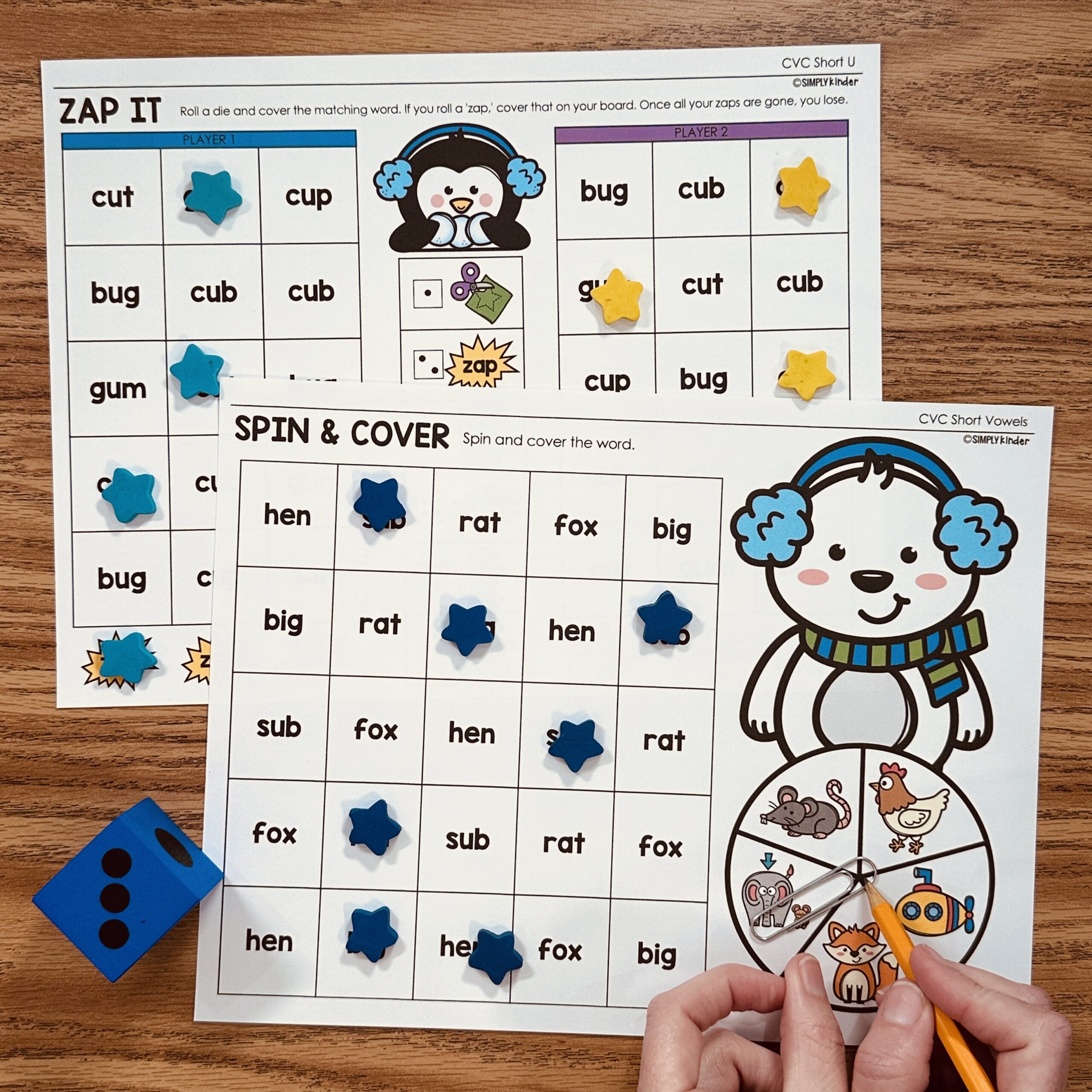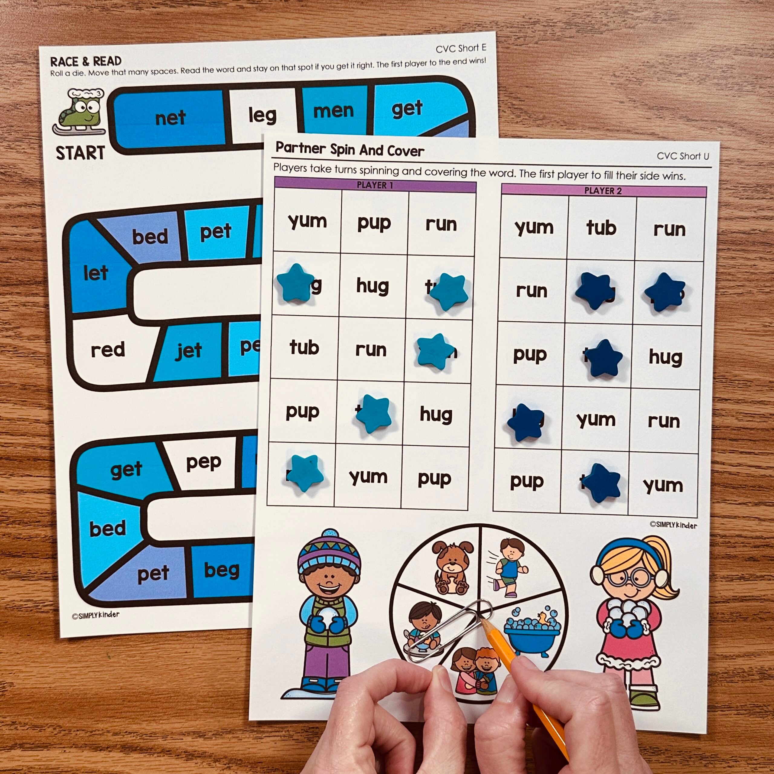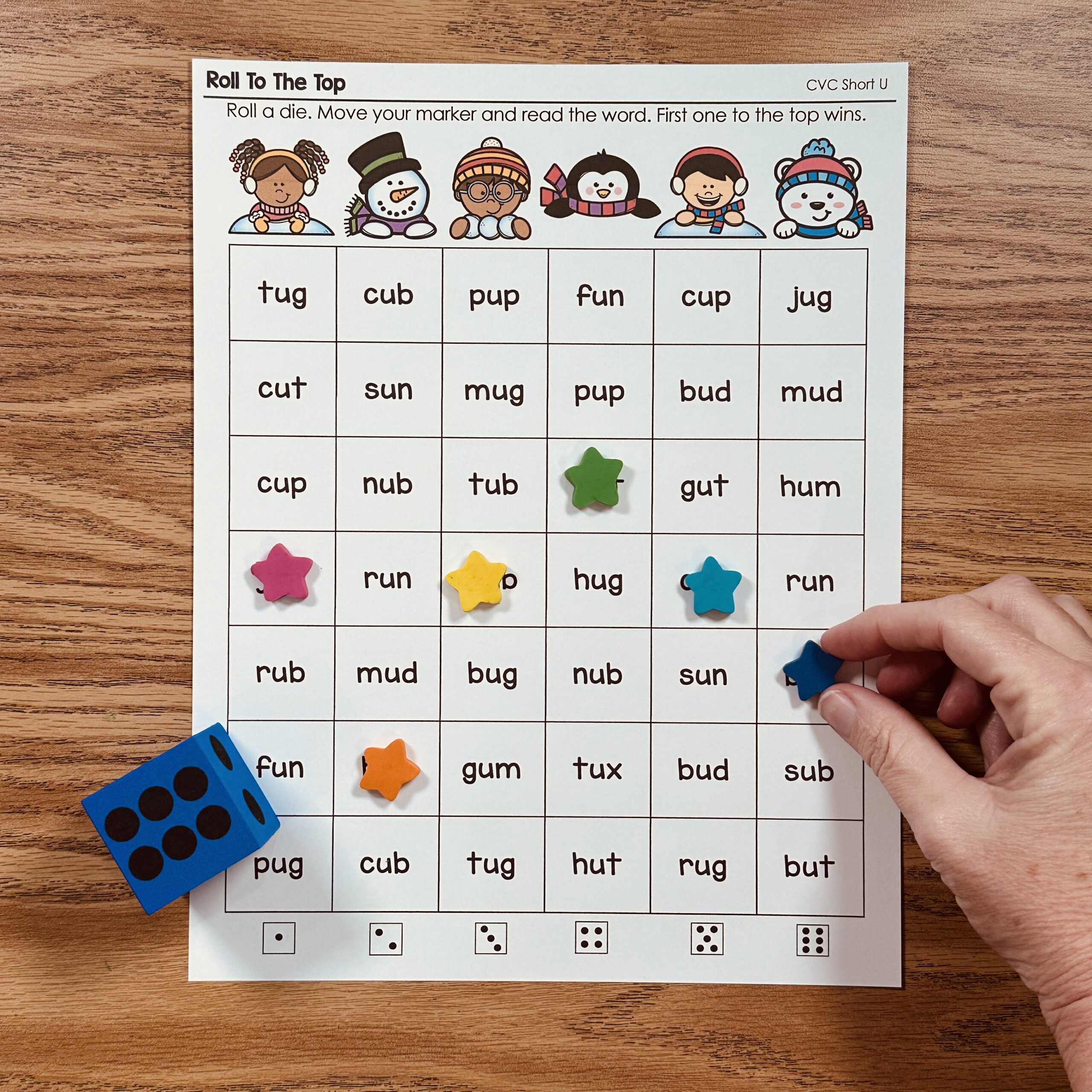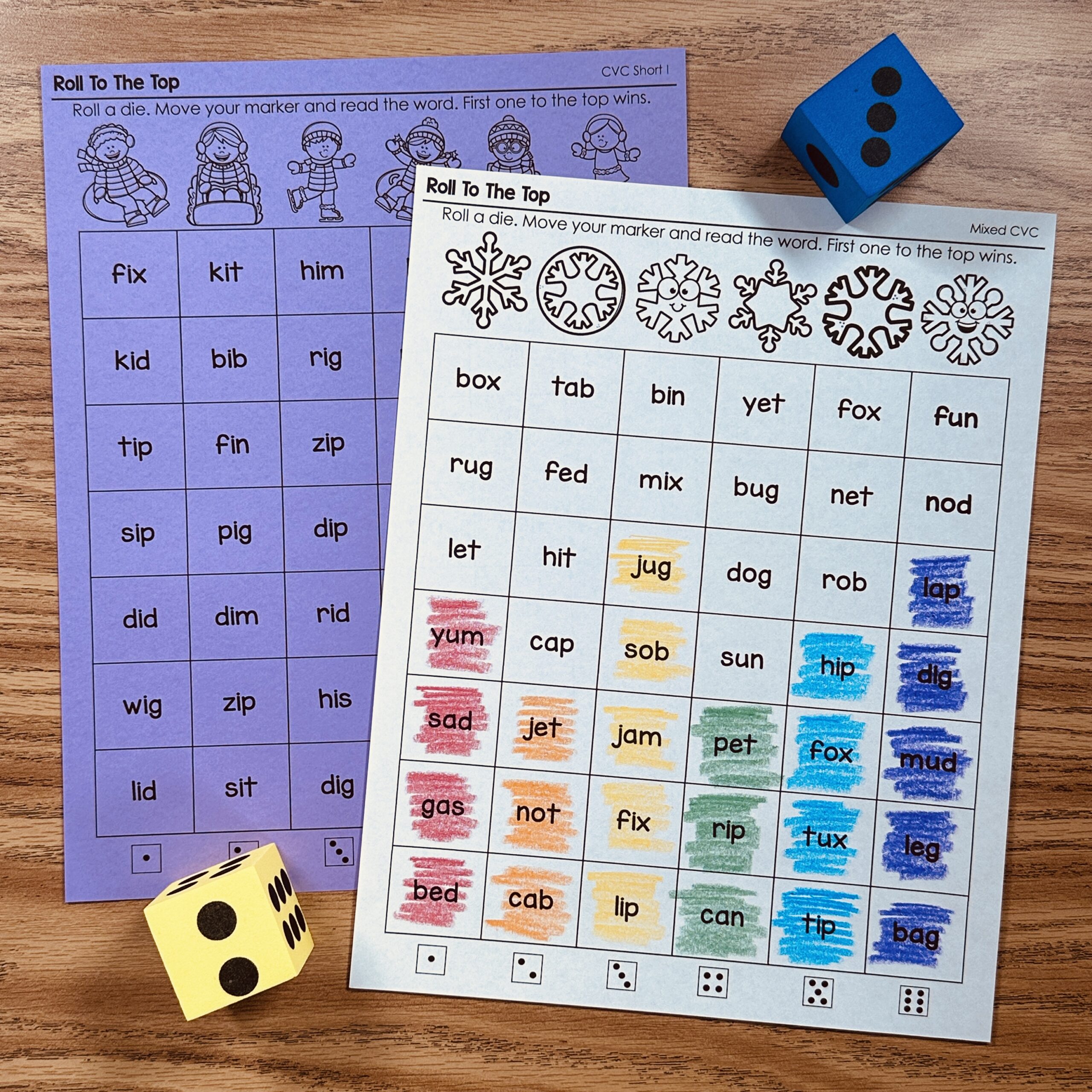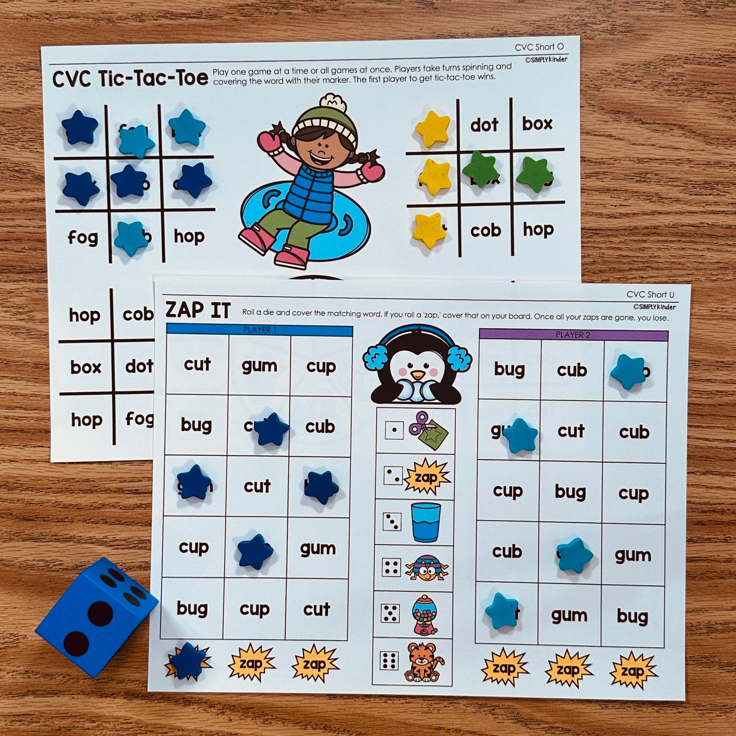 This is a set of Tic-Tac-Toe Games for CVC practice all with the Winter theme! Students spin the spinner and cover the word they land on in the game. First person who get three in a row wins. (Or play by yourself with two colors).