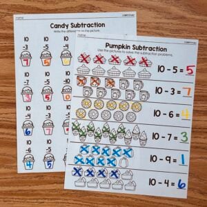 October Subtraction Printables