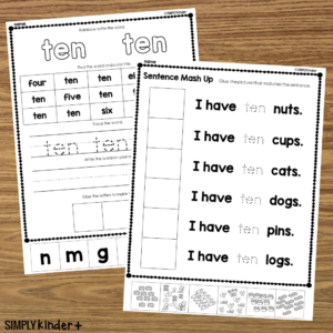 Students will cut and glue the word together (sounds are grouped not individual letters) and cut and glue sentences together.