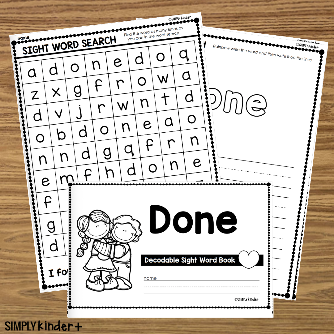 Practice high-frequency words with this set of printables for the Sight Word Done.