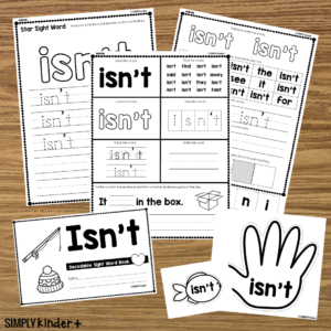 This set includes a craft word (with sounds grouped not individual letters), a high-five word, and a fishing sight word.