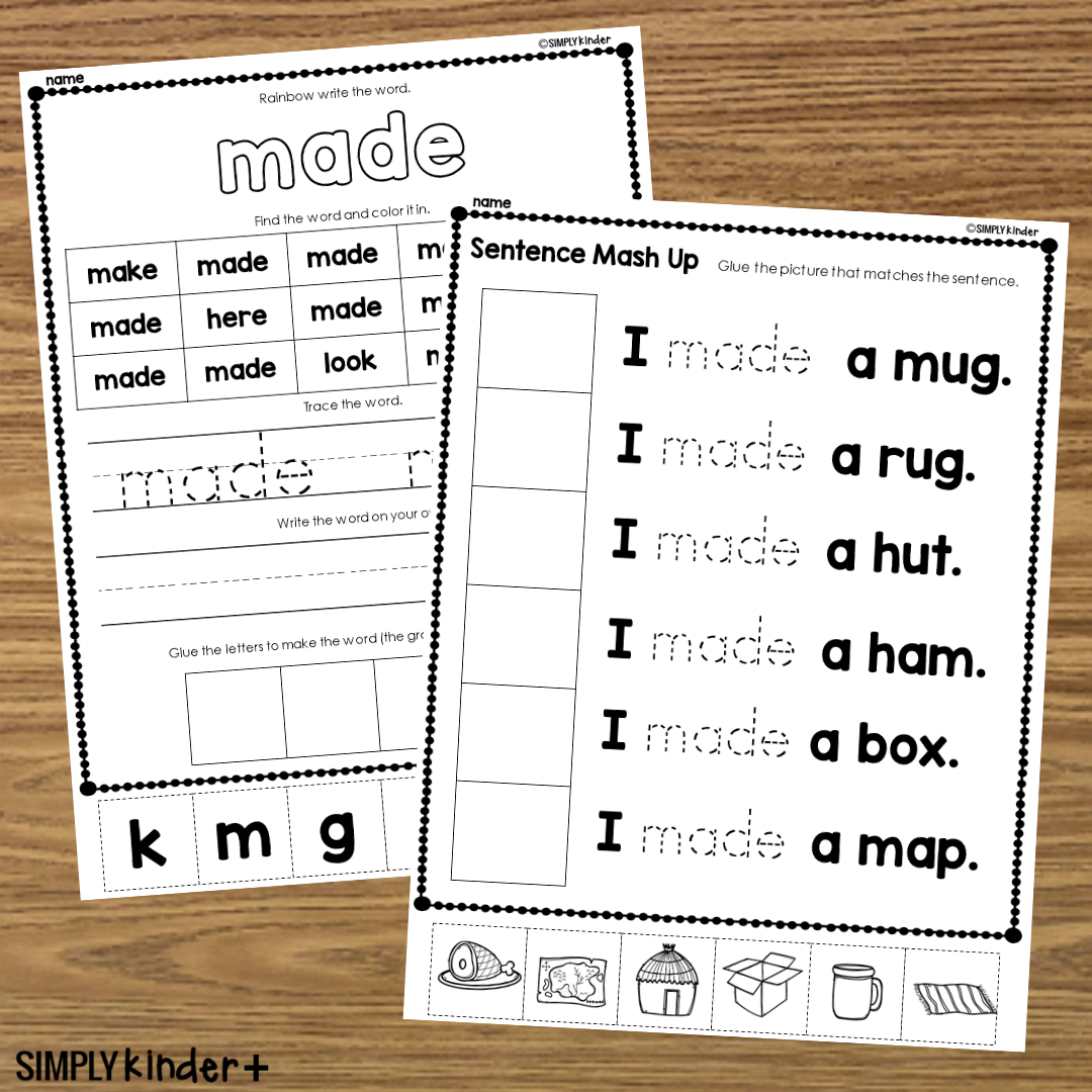 Practice high-frequency words with these cut and glue printables for the Sight Word Made.