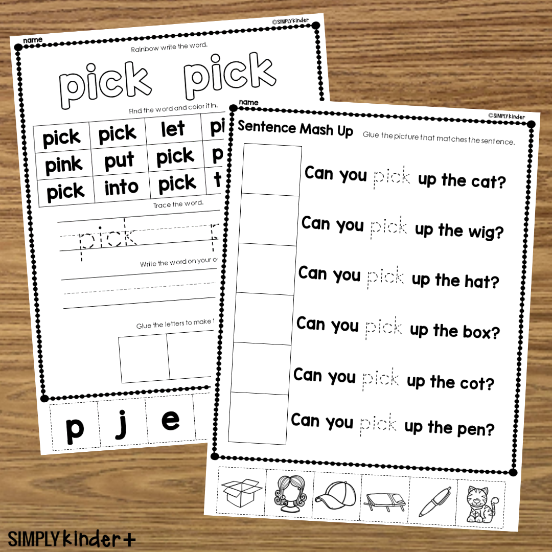Practice high-frequency words with these cut and glue printables for the Sight Word Pick.