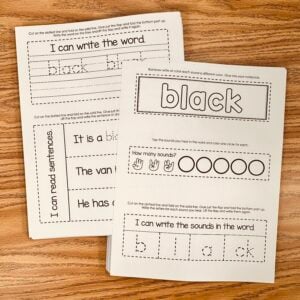 Students will cut and glue the word together (sounds are grouped not individual letters) and cut and glue sentences together.
