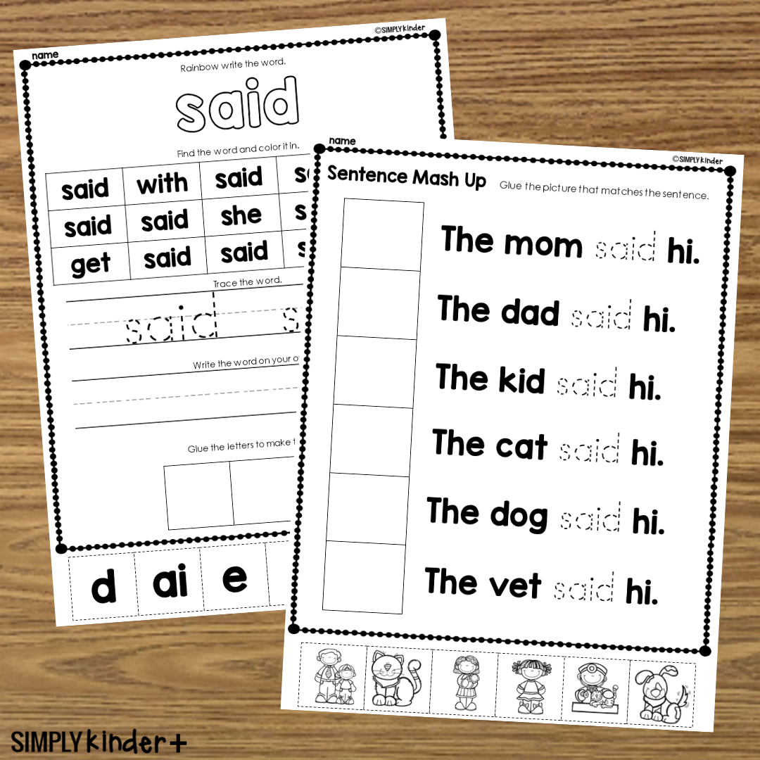Practice high-frequency words with these cut and glue printables for the Sight Word Said.