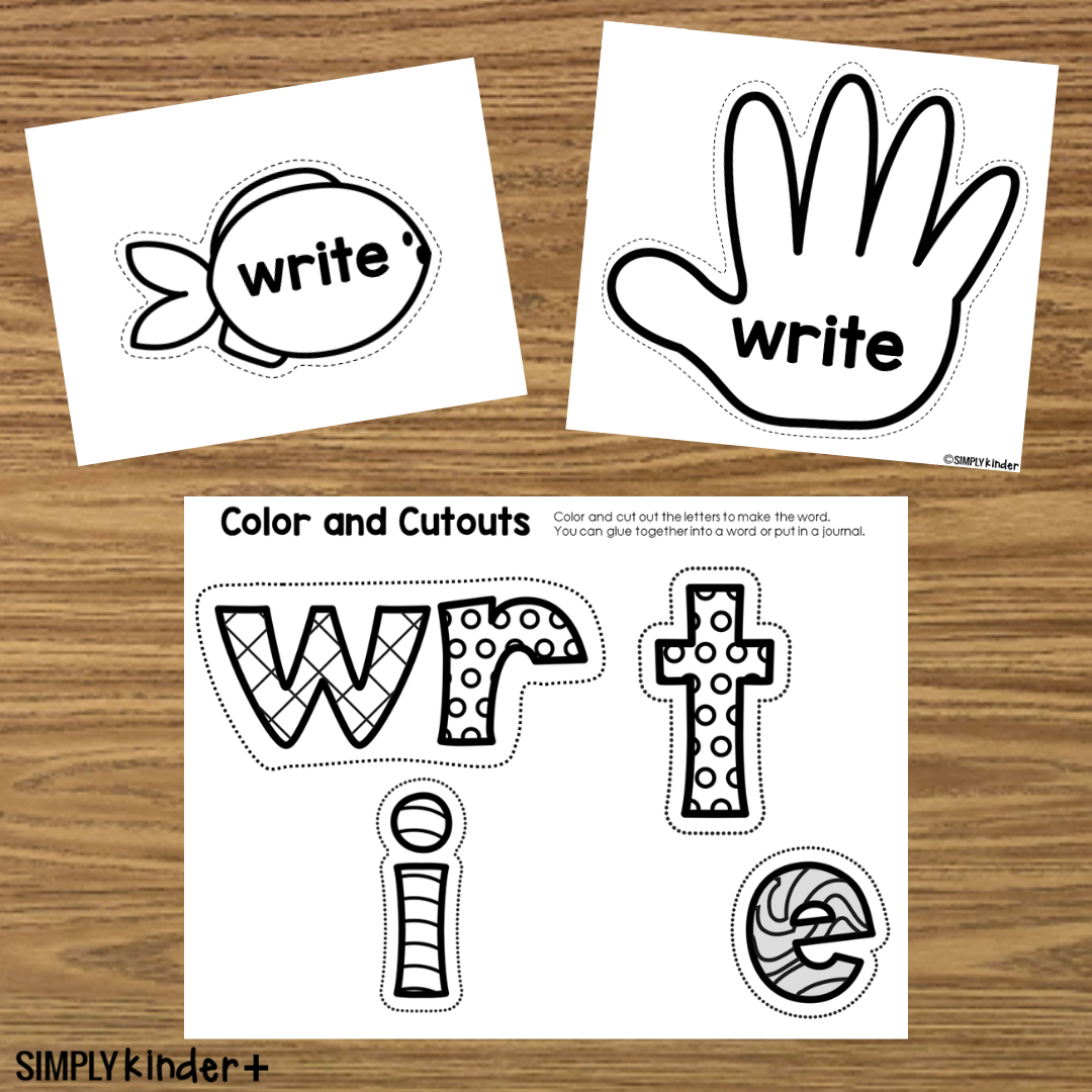 This set includes a craft word (with sounds grouped not individual letters), a high-five word, and a fishing sight word.