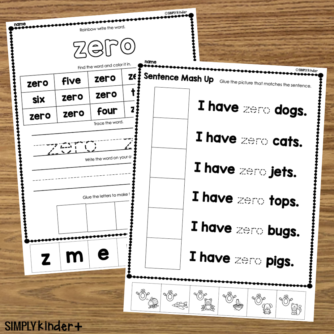 Practice high-frequency words with these cut and glue printables for the Sight Word Zero.