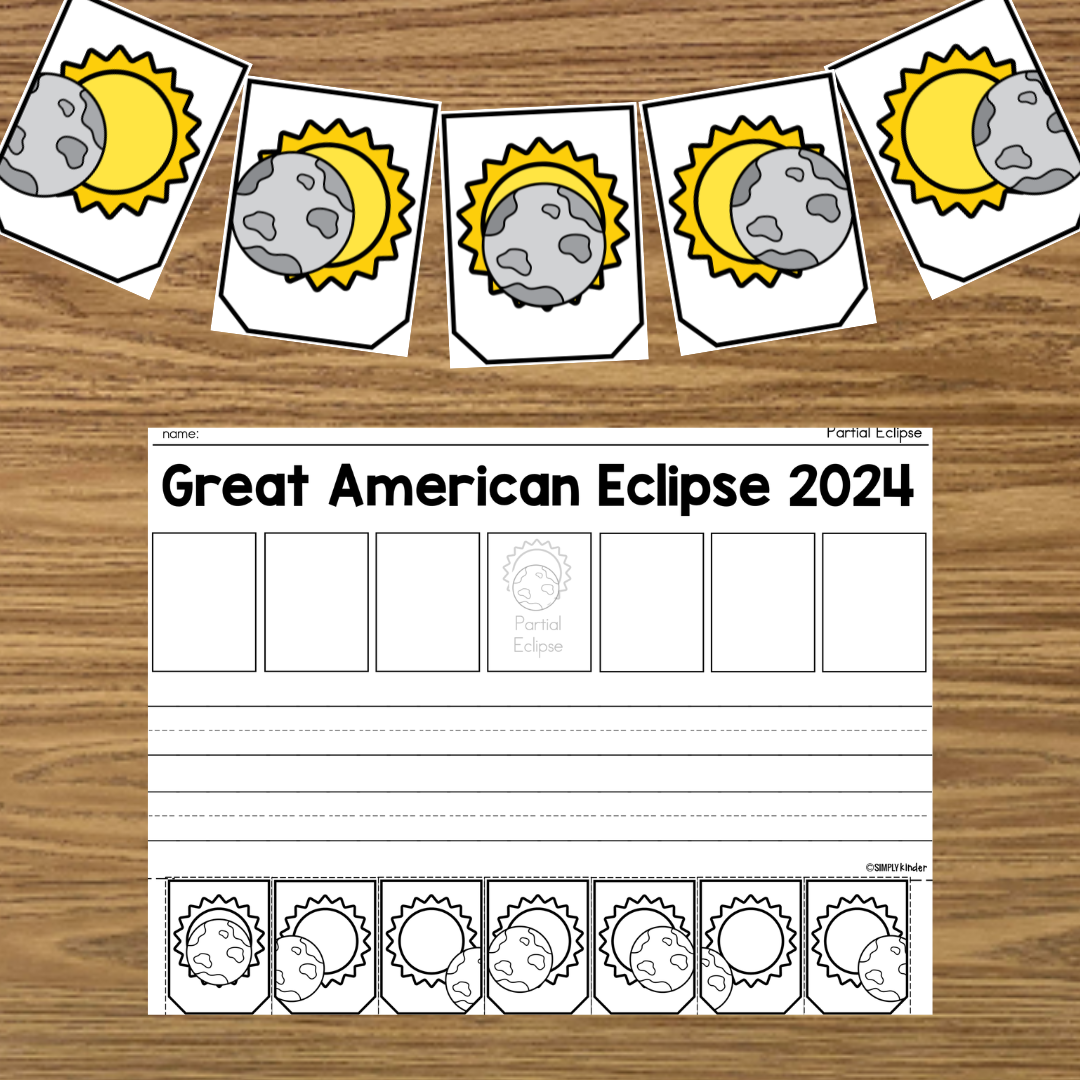 Use this banner to show how the moon will pass in front of the sun during a partial solar eclipse. Students can use the matching cut and glue printable to create their won.