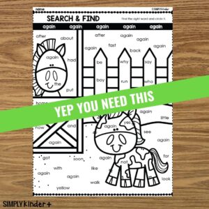 Again Sight Word Search And Find – Fry, Dolch PrePrimer