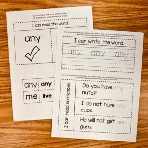 Any – Sight Word Cut & Glue Activities