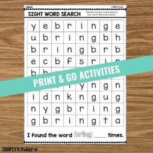 Bring – Sight Word Printable Activities