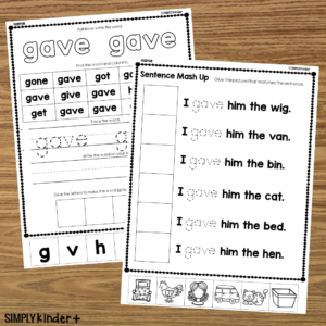 Gave – Sight Word Cut & Glue Activities