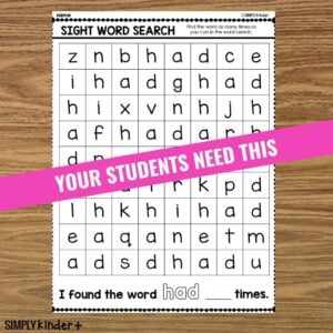 Had Sight Word Search And Find – Fry, Dolch PrePrimer