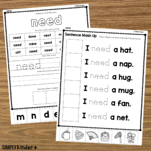 Need – Sight Word Book Activities