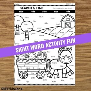 Ride Sight Word Search And Find – Fry, Dolch PrePrimer