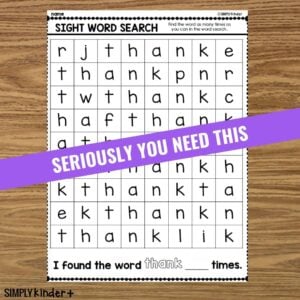 Thank Sight Word Search And Find – Fry, Dolch PrePrimer