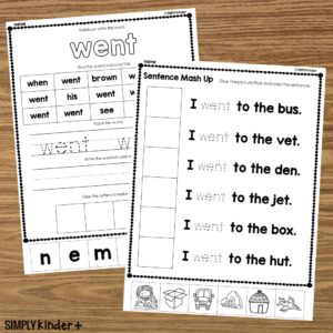 Went Sight Word Interactive Notebook – Fry, Dolch Primer