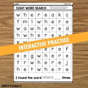 Where Sight Word Interactive Notebook – Fry, Dolch PrePrimer