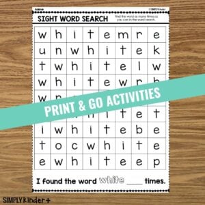 White Sight Word Search And Find – Fry, Dolch PrePrimer