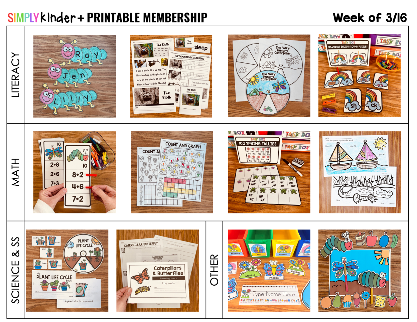 - Math: The Hungry Caterpillar Addition Center, March Graphing Printables, Spring 100 Tallies Morning Bin, Color Word Mini Printables