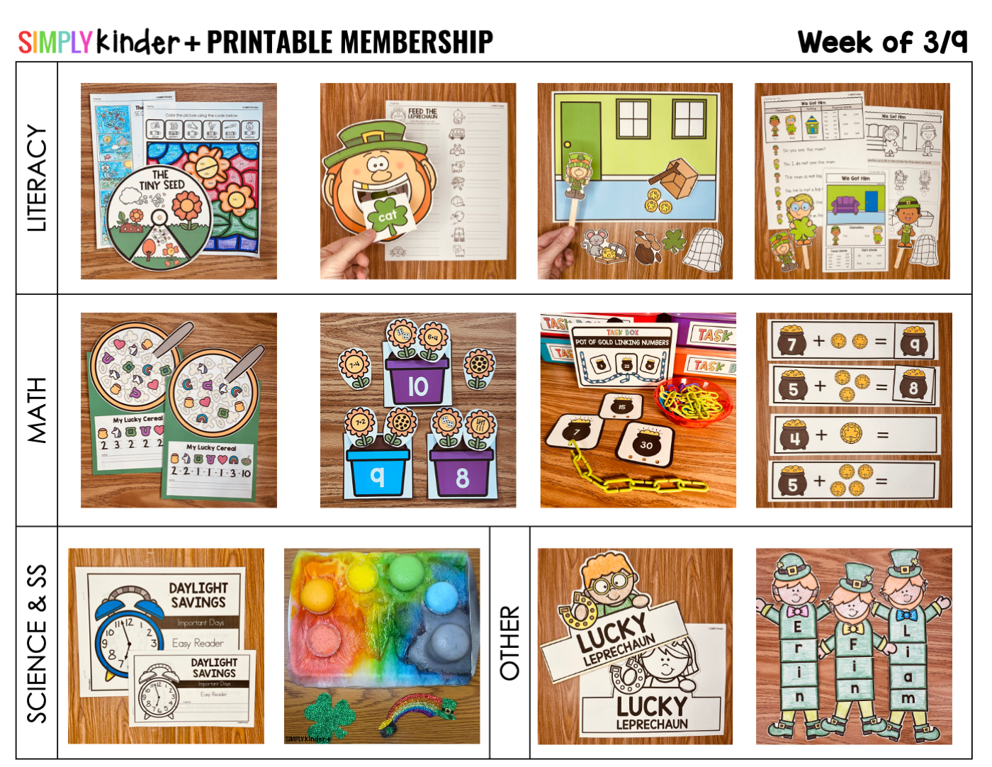 - Literacy: The Tiny Seed Activities, Feed the Leprechaun CVC Center, How to Catch a Leprechaun Retelling Mats, We Got Him Decodable Partner Play